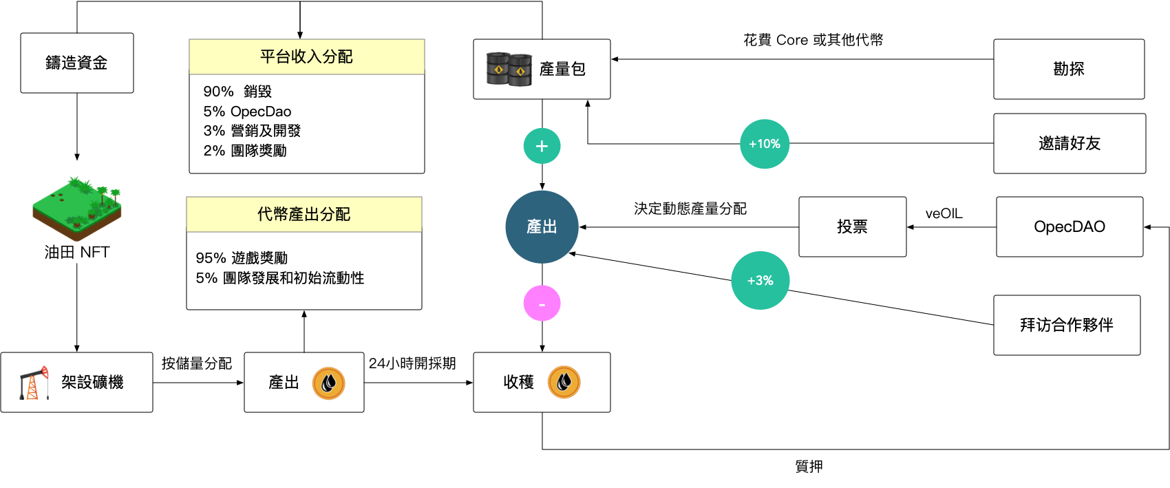 $Oil 95% 將分配給用戶作為遊戲獎勵,剩餘 5% 用於團隊發展和初始流動性。