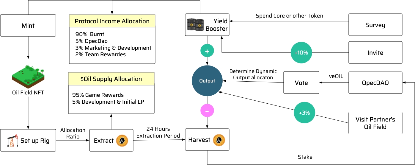 The total supply of $Oil is capped at 21 billion and it will be distributed between the Basic Mining Pool and the Business Warfare Mining Pool.